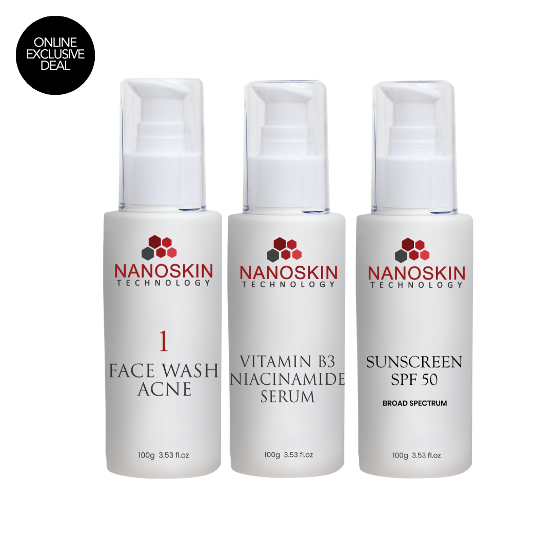 Acne Face Wash (100g) + Vitamin B3 Niacinamide Serum (100g) + Sunscreen SPF 50 (100g)